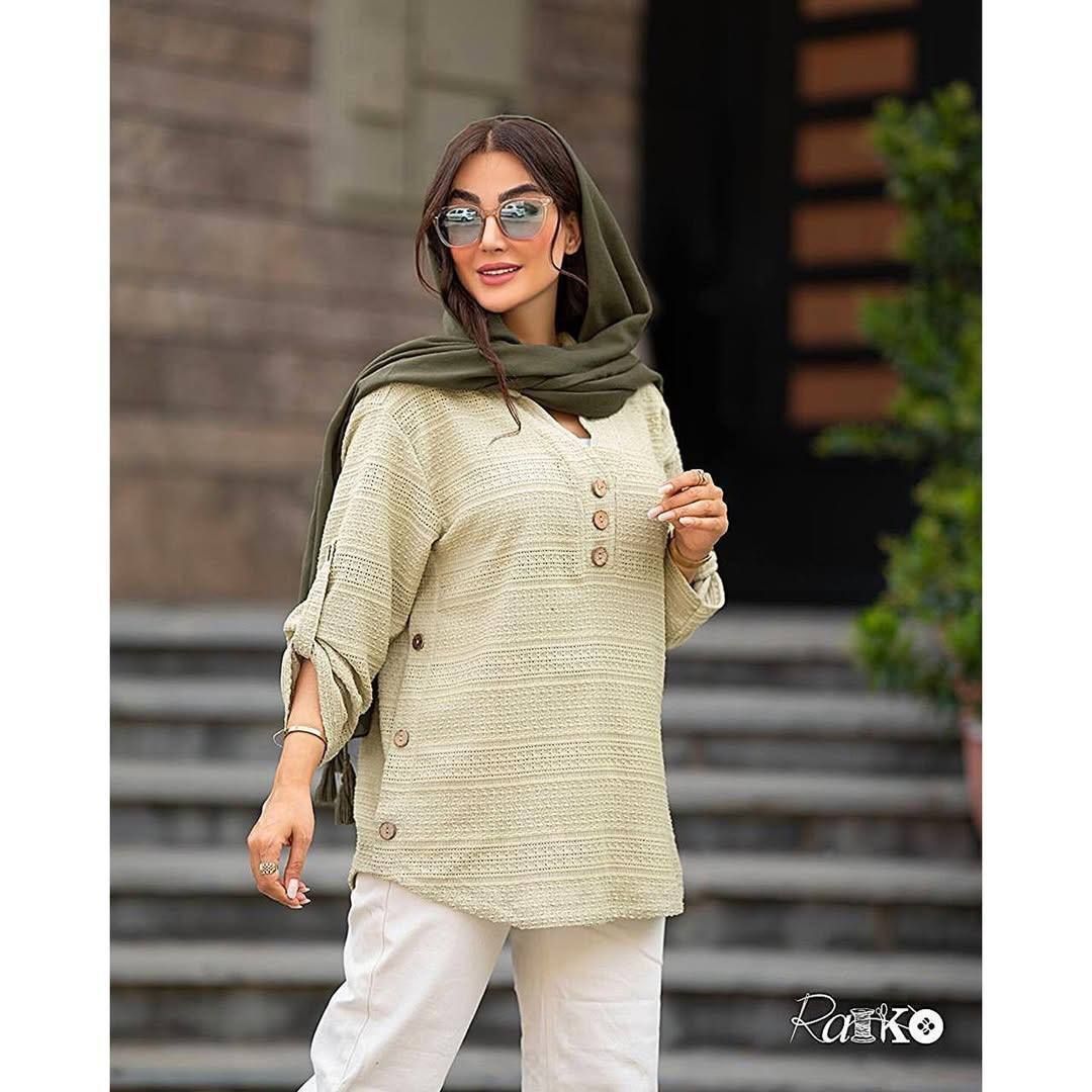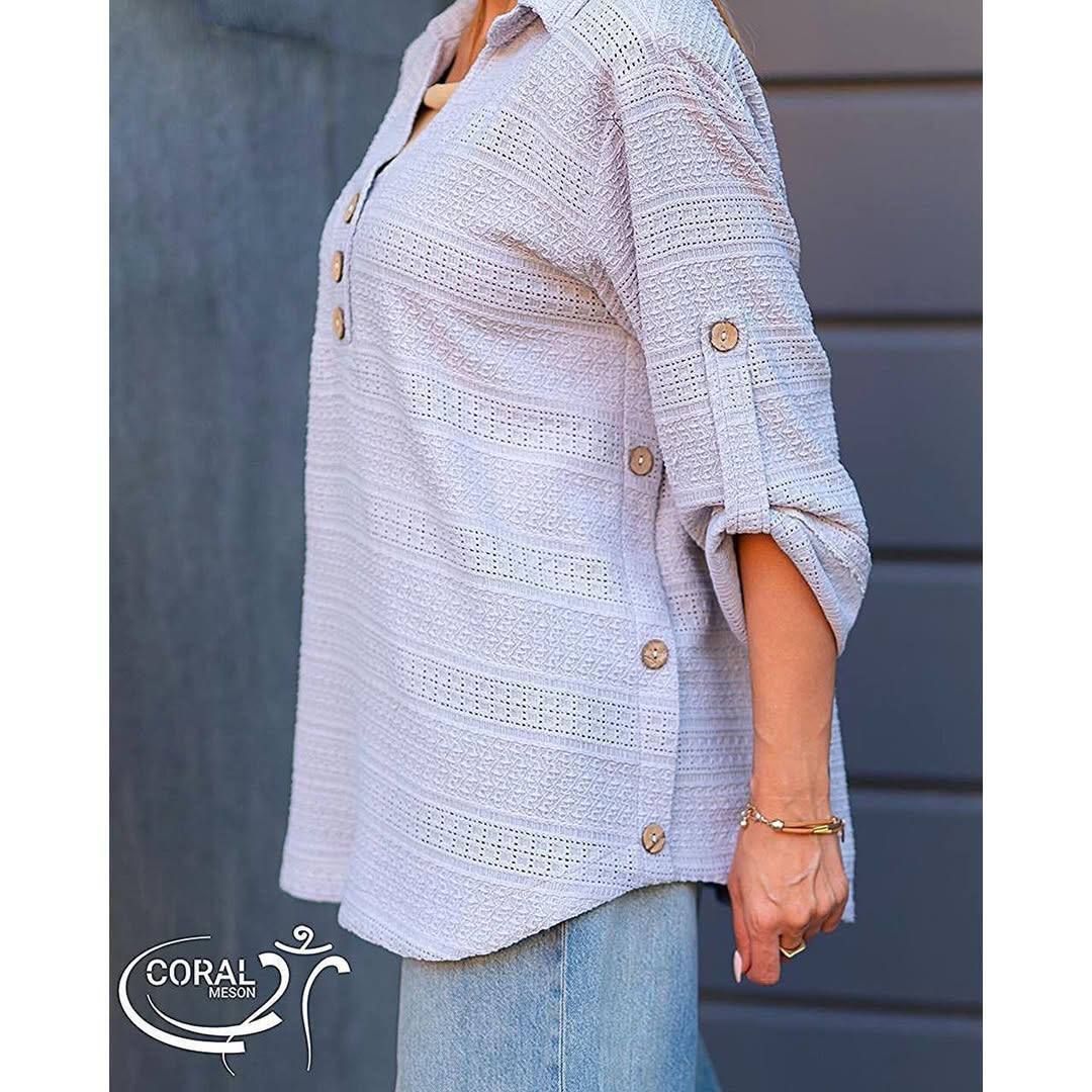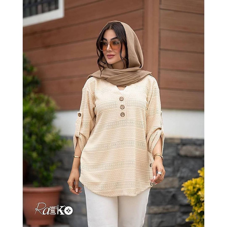 ⚜️ شومیز یقه هفت دو دکمه چوبی