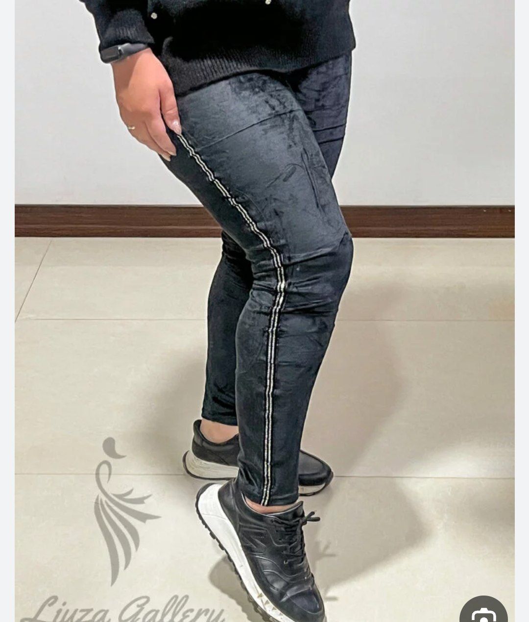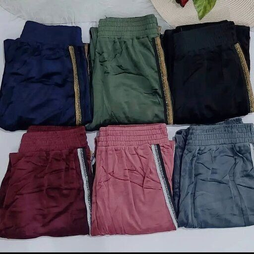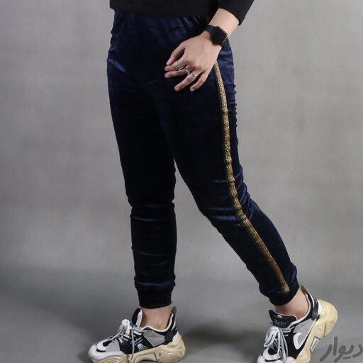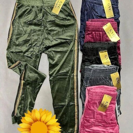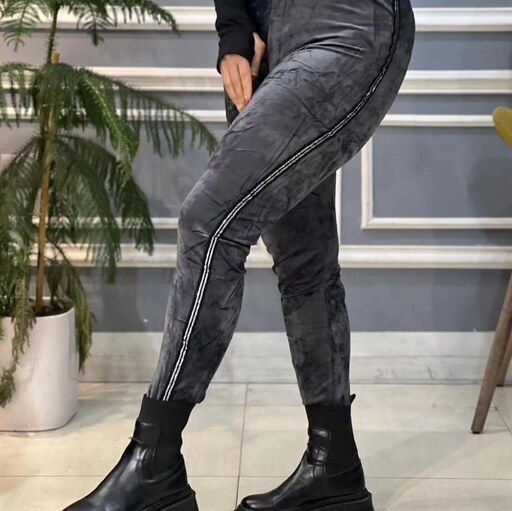 شلوار مخمل کوبیده بغل نوار طلایی